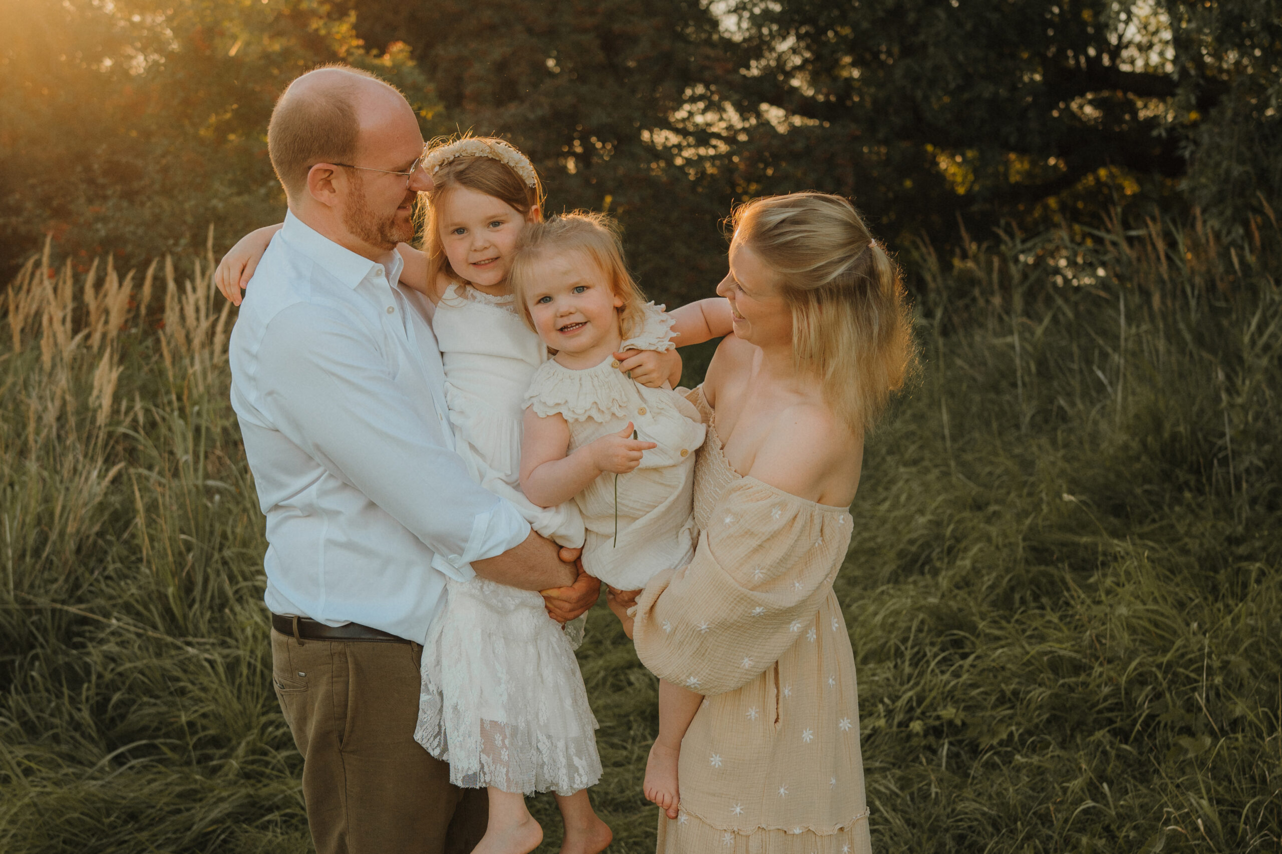 Du wünschst dir ein authentisches Familienshooting – draußen auf einer Wiese, im magischen Sonnenuntergang.